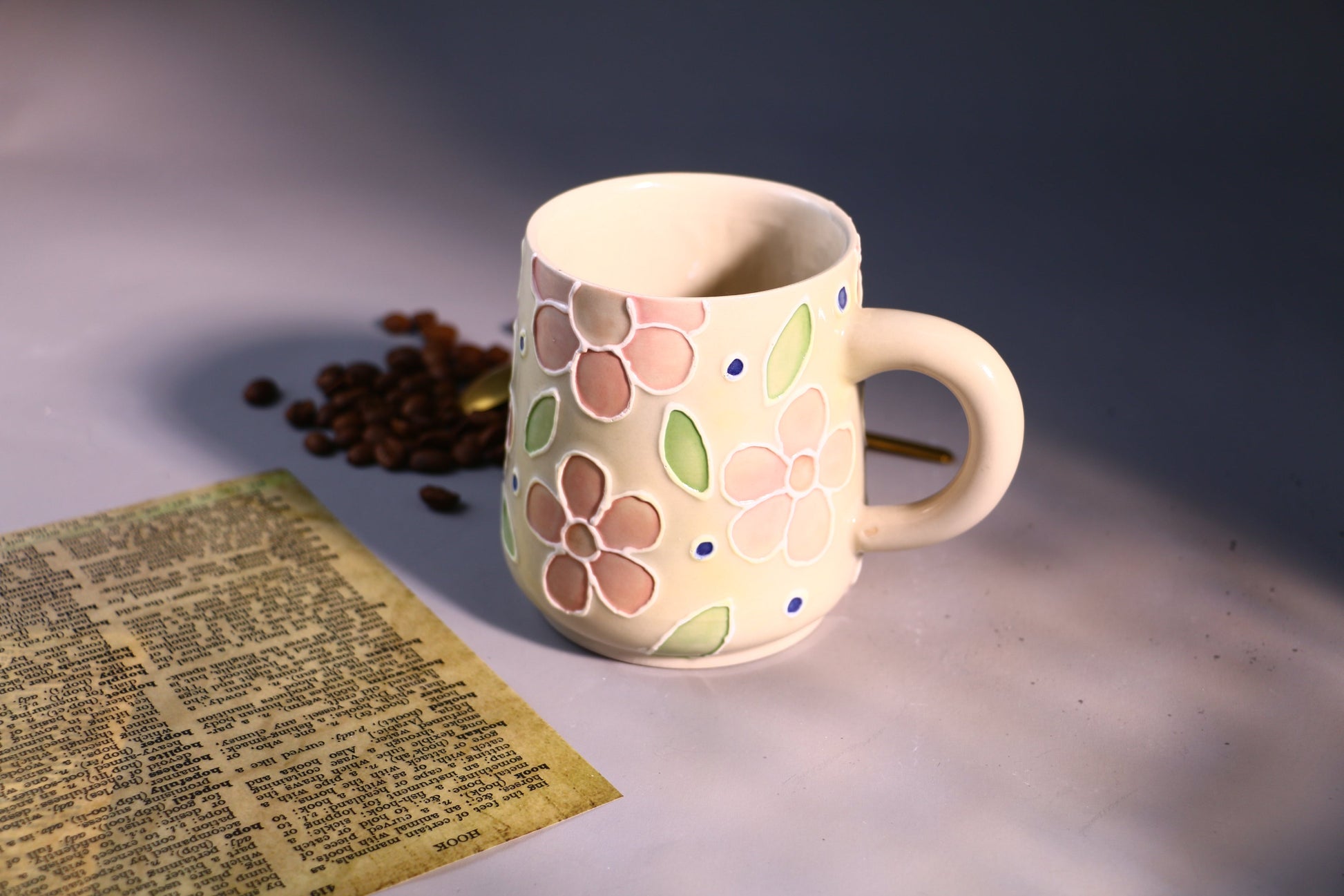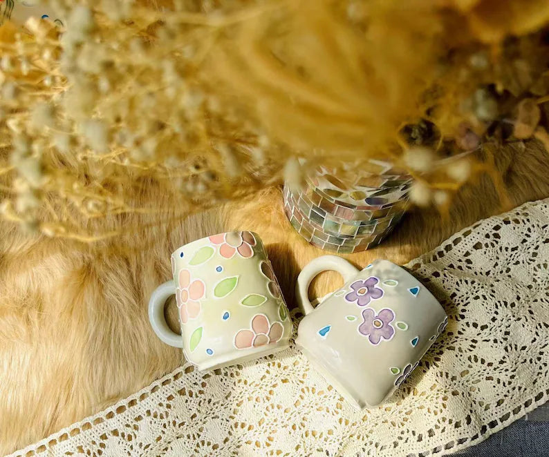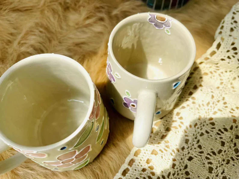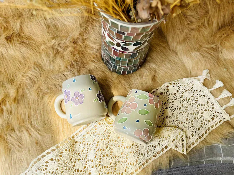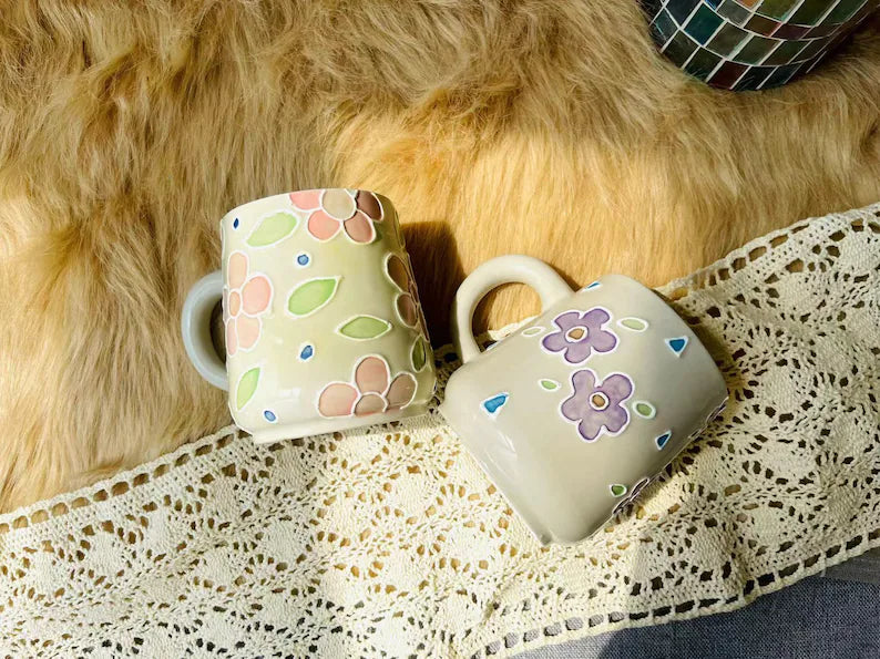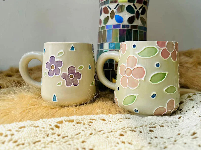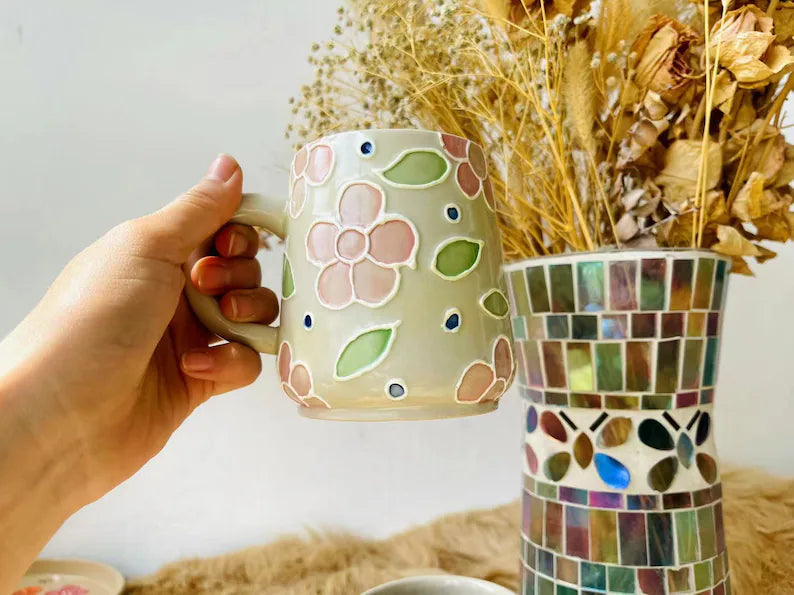 Floral Ceramic Coffee Mug, Personalized Handmade Ceramic Cup for Gifts