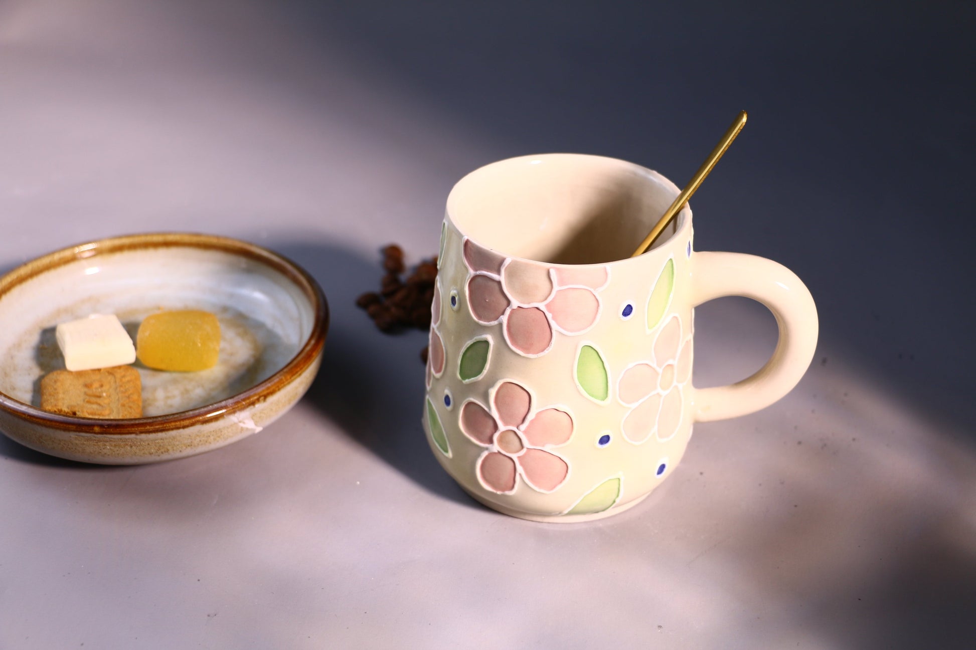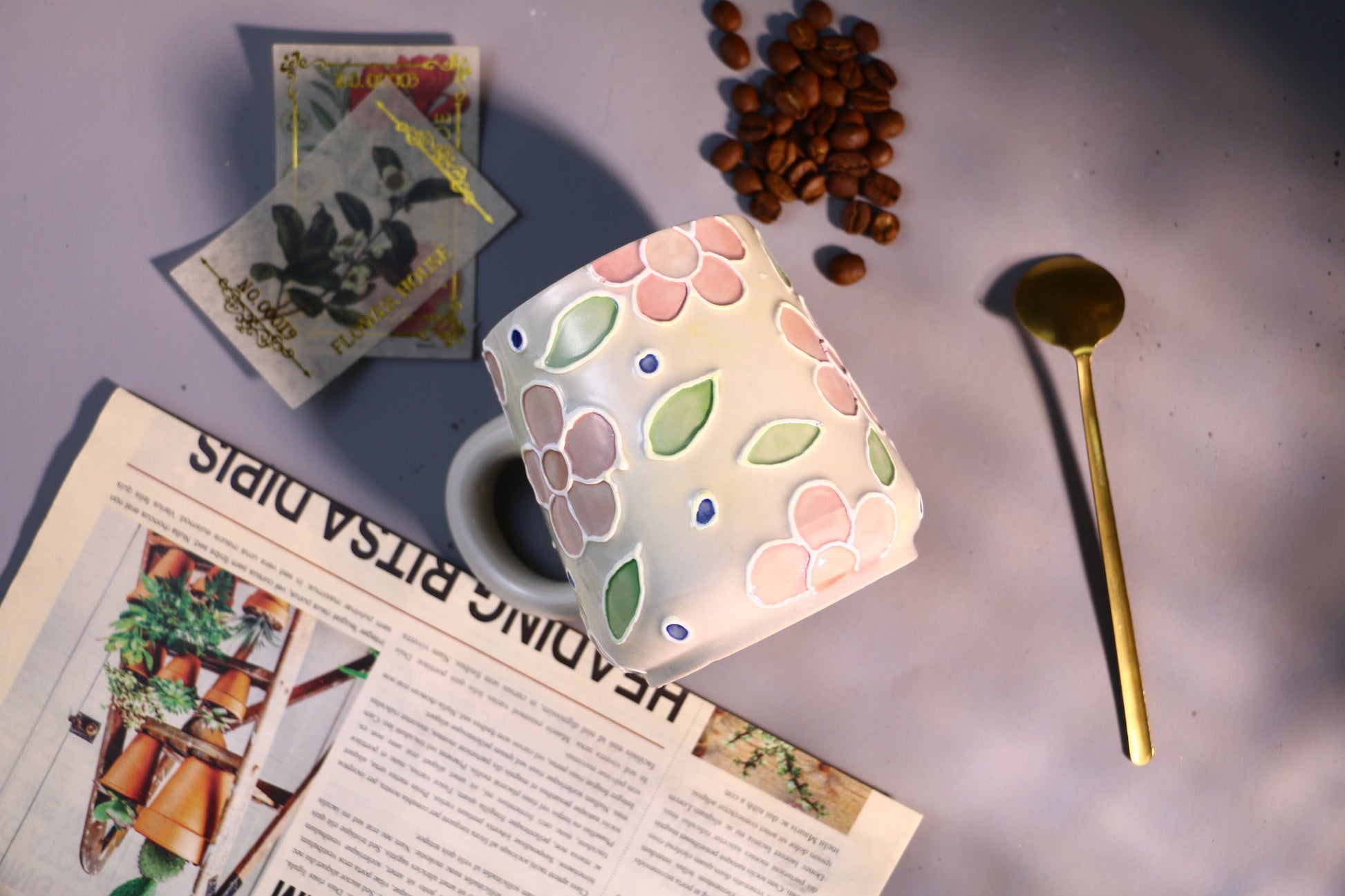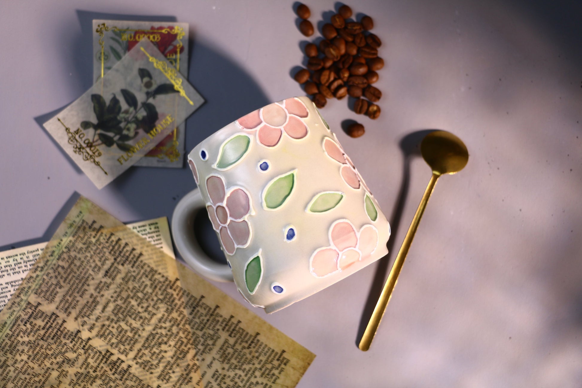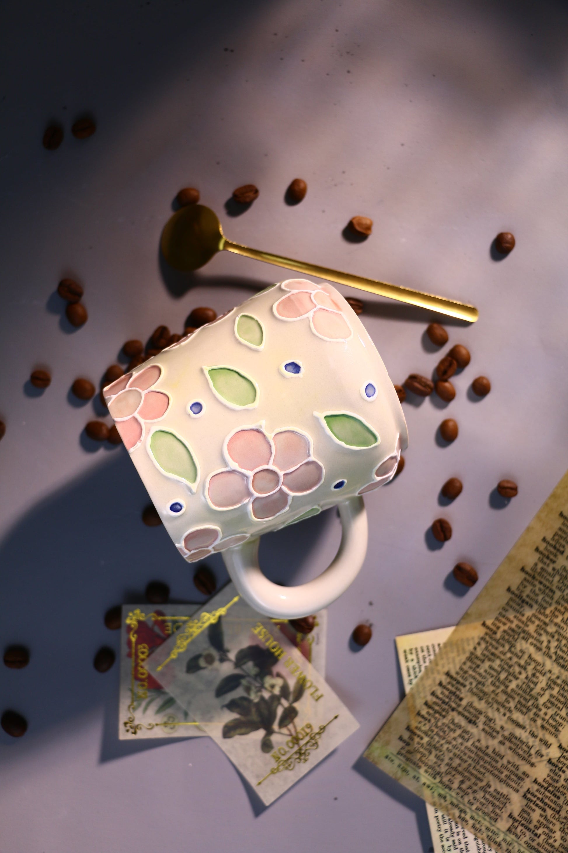 Floral Ceramic Coffee Mug, Personalized Handmade Ceramic Cup for Gifts