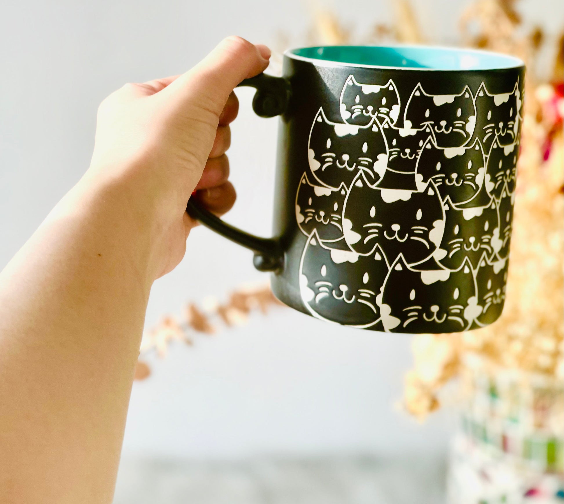 ☕Whether it's a thoughtful present for a cat enthusiast or a delightful addition to your own collection, this artisanal cat mug is sure to bring smiles with every sip.