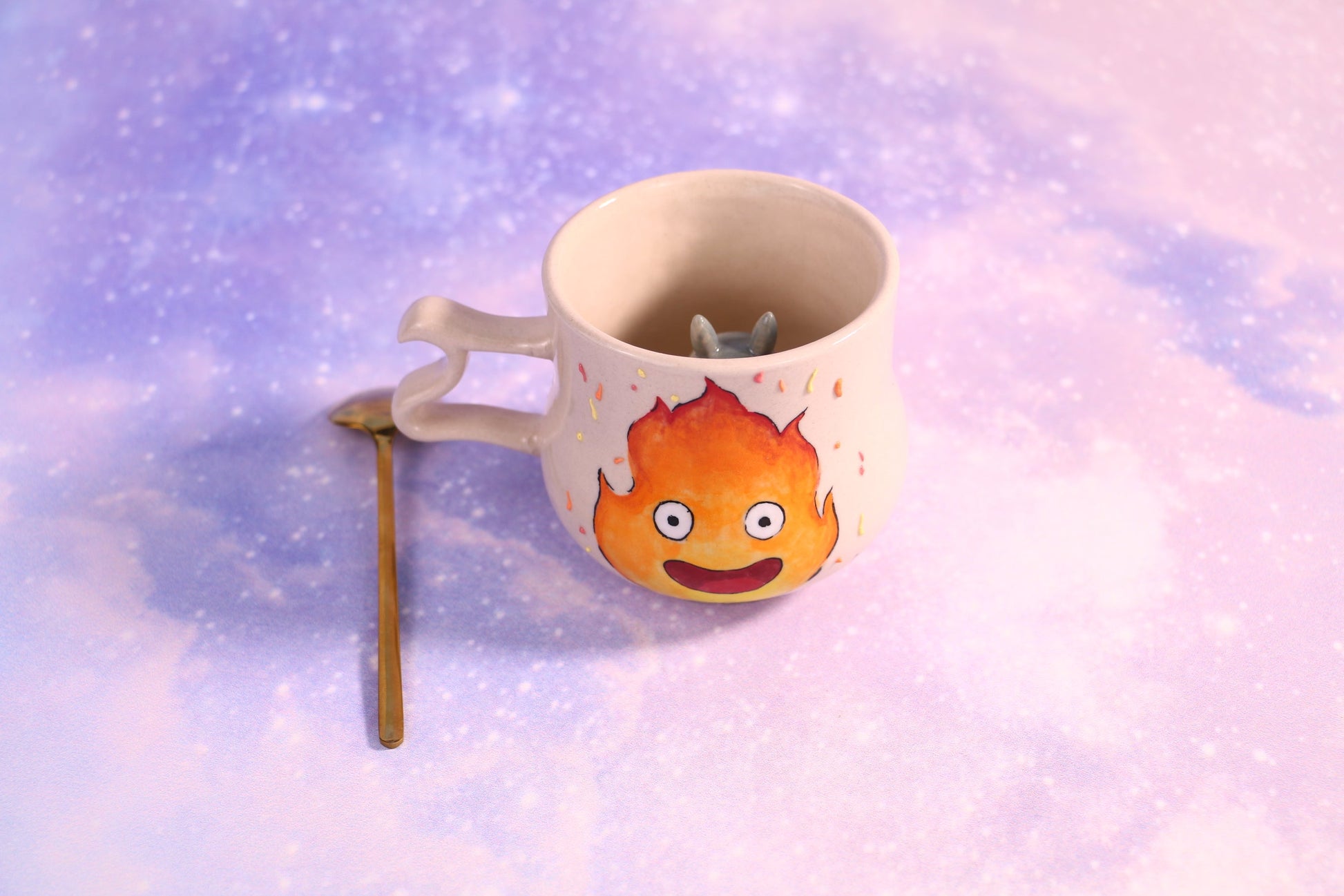 Handmade Fire Demon Character Cup, Totoro Inside Cup, Unique Anime Gift