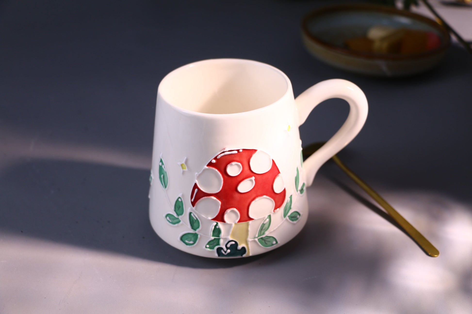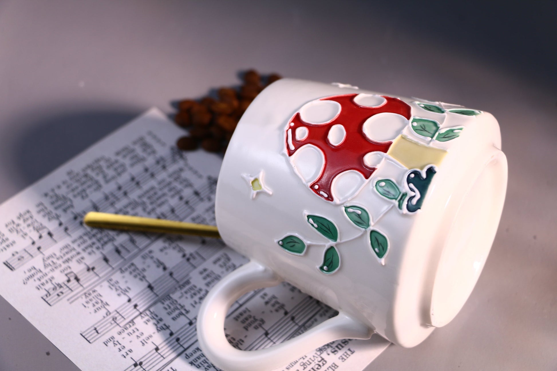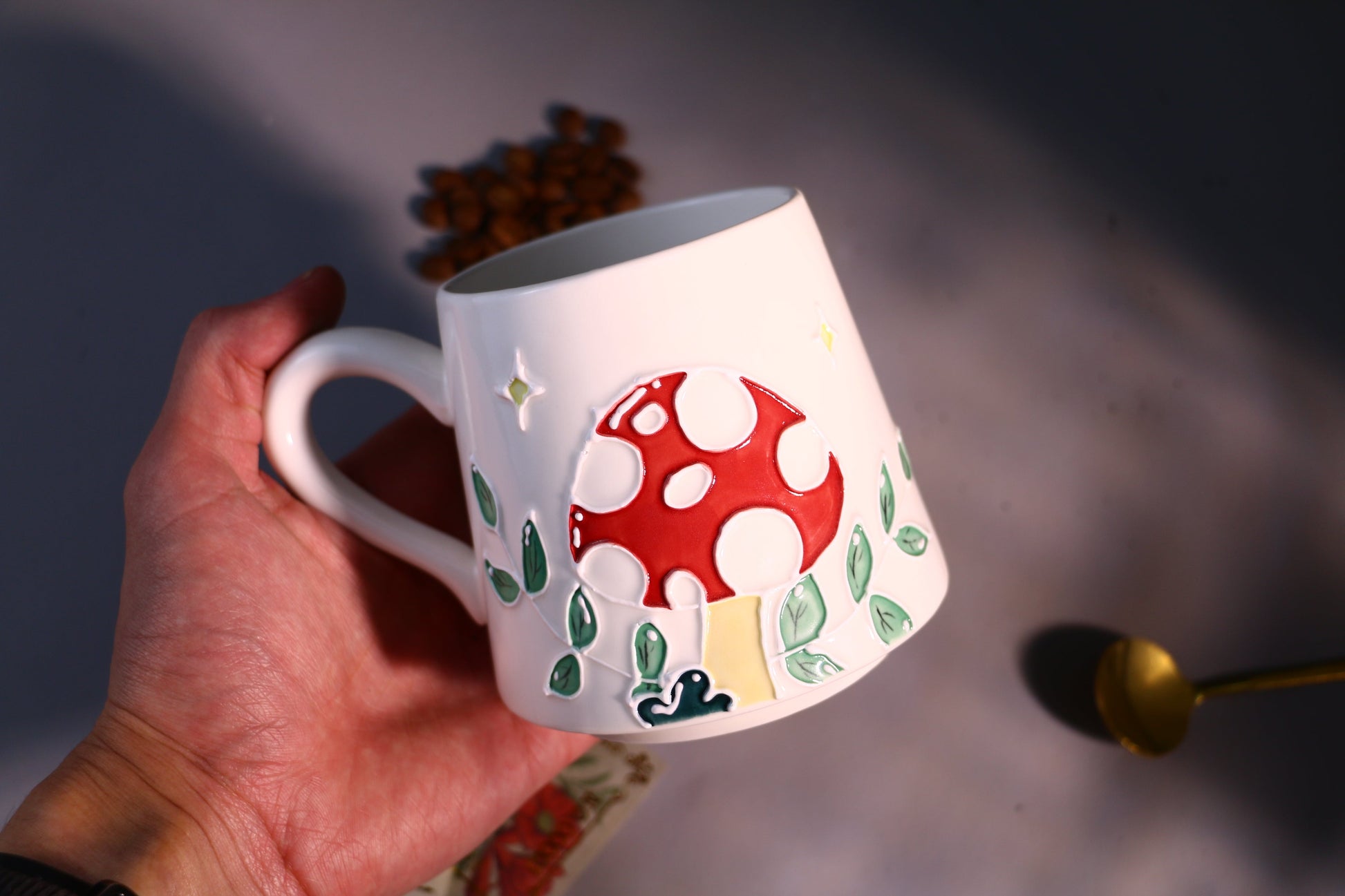Mushroom Ceramic Coffee Mug, Personalized Handmade Pottery Cup for Gifts
