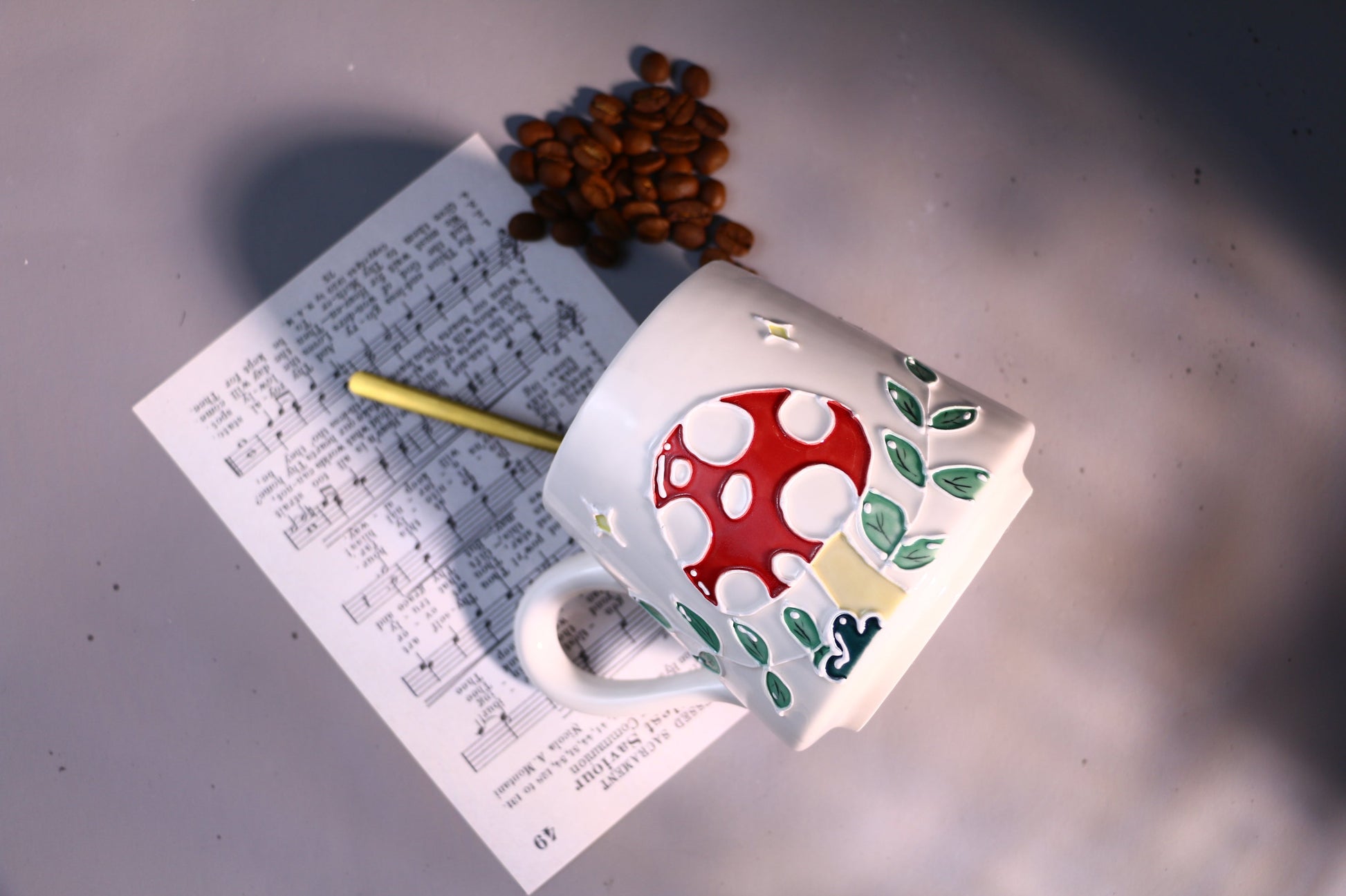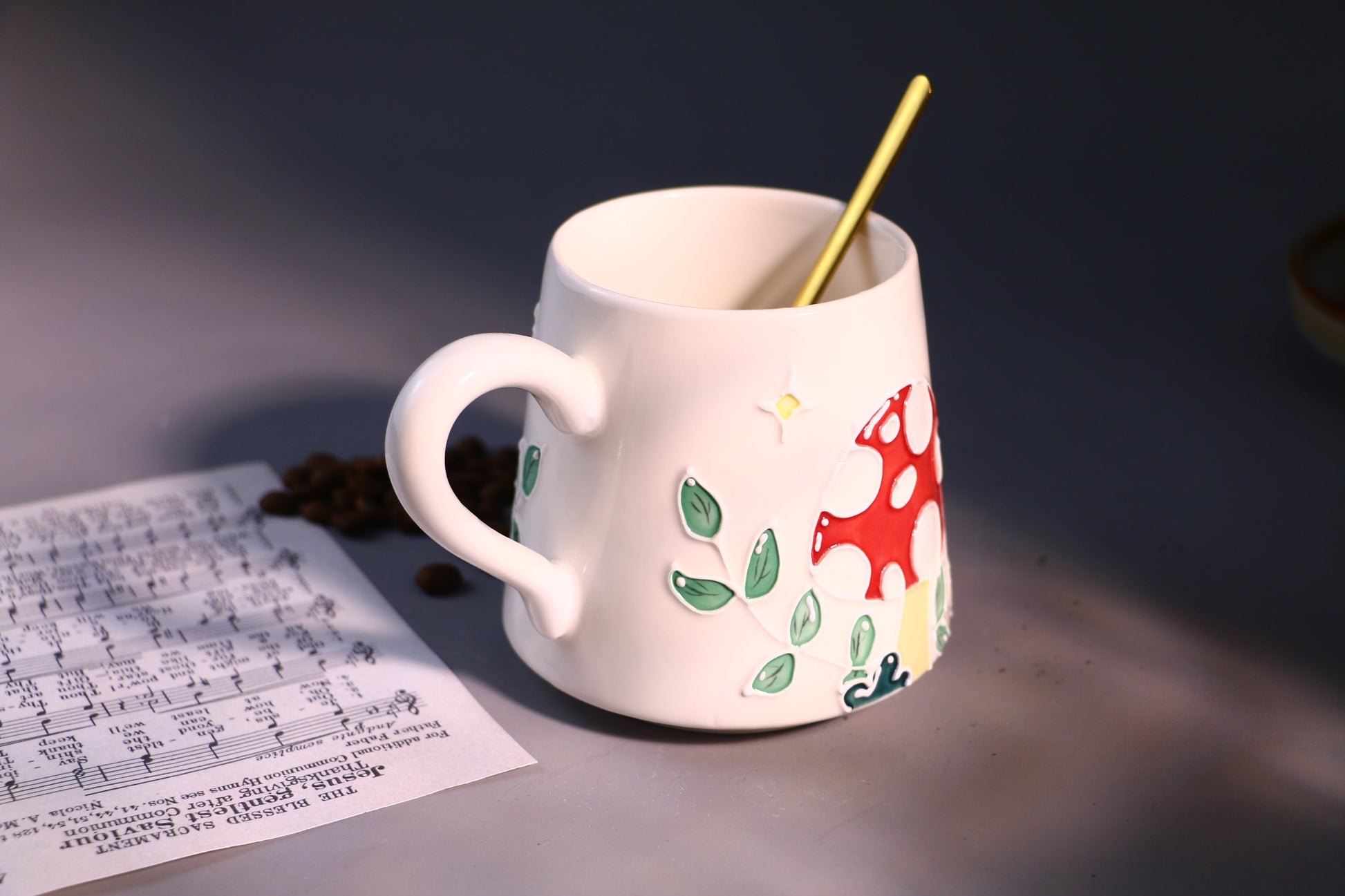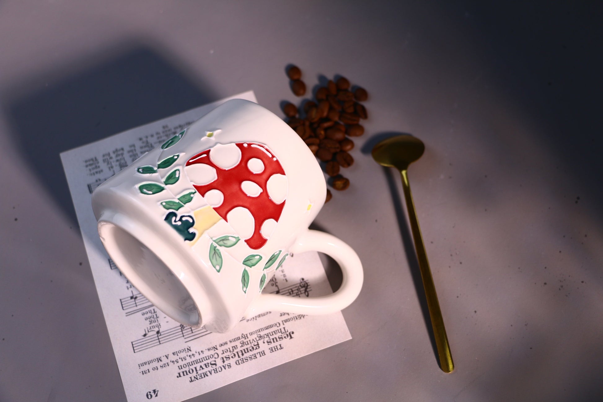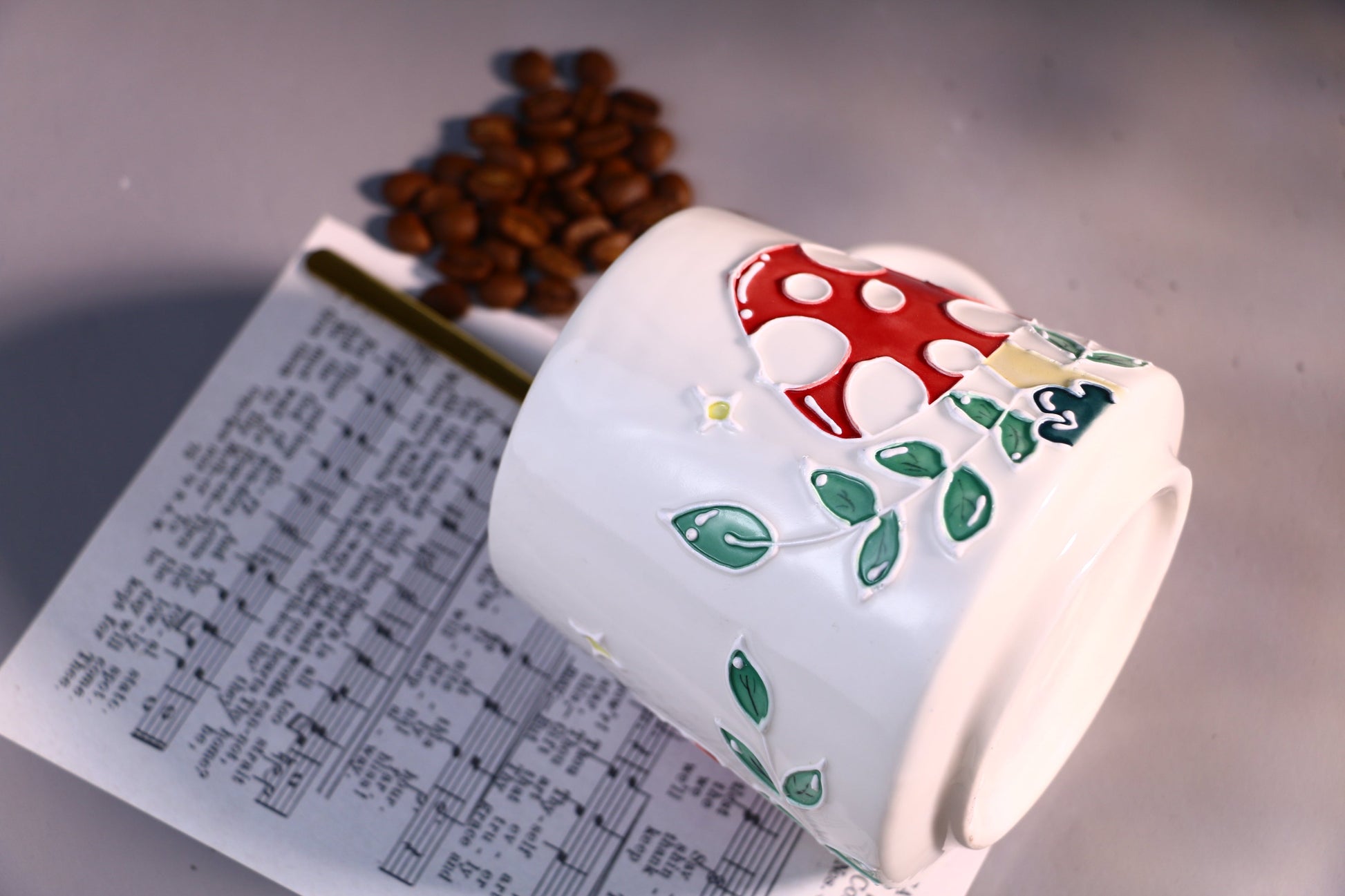 Mushroom Ceramic Coffee Mug, Personalized Handmade Pottery Cup for Gifts