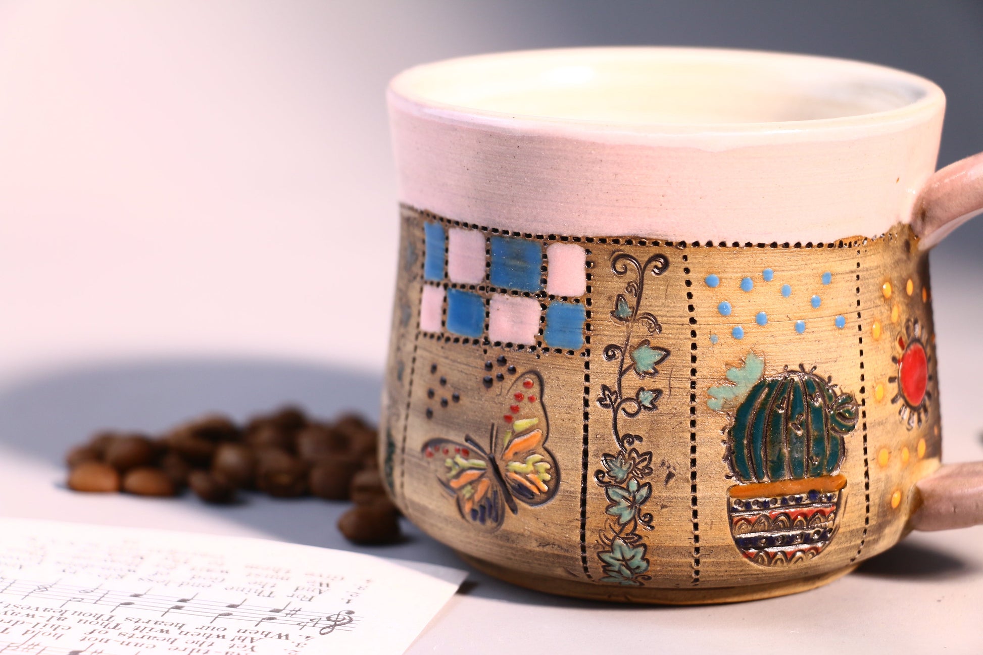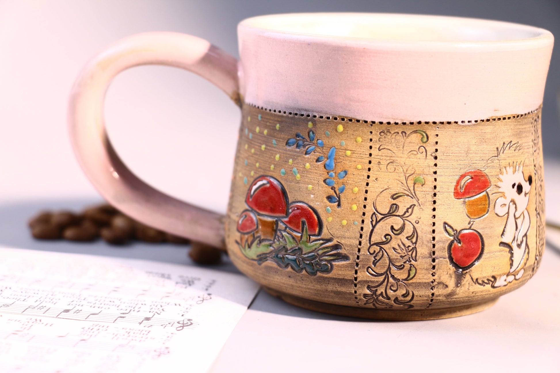 Natural Hand-painted Ceramic Coffee Mug, Floral Personalized Handmade Pottery Cup for Gifts