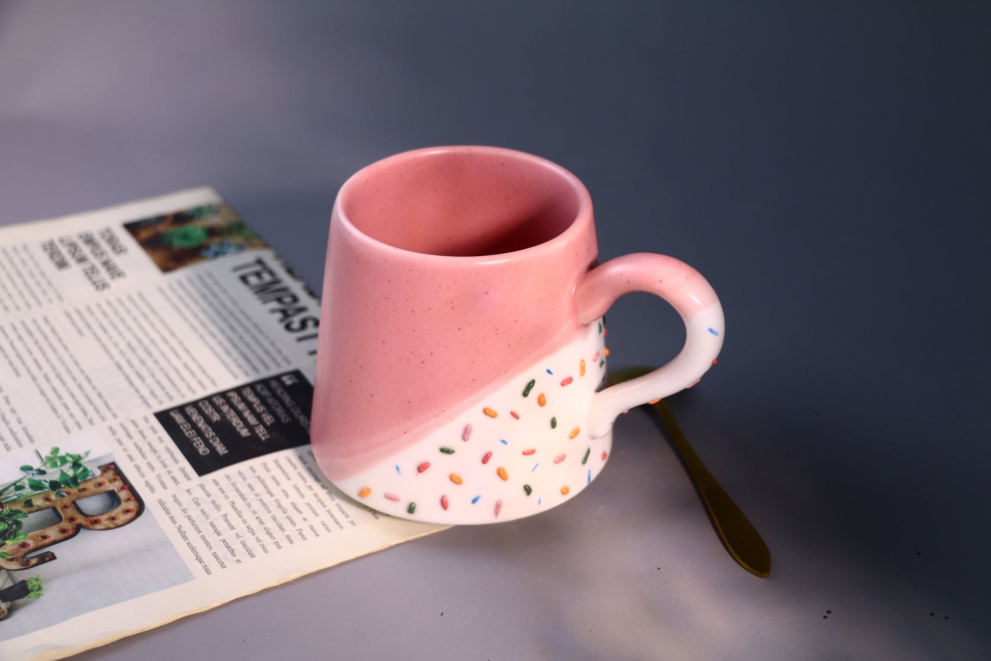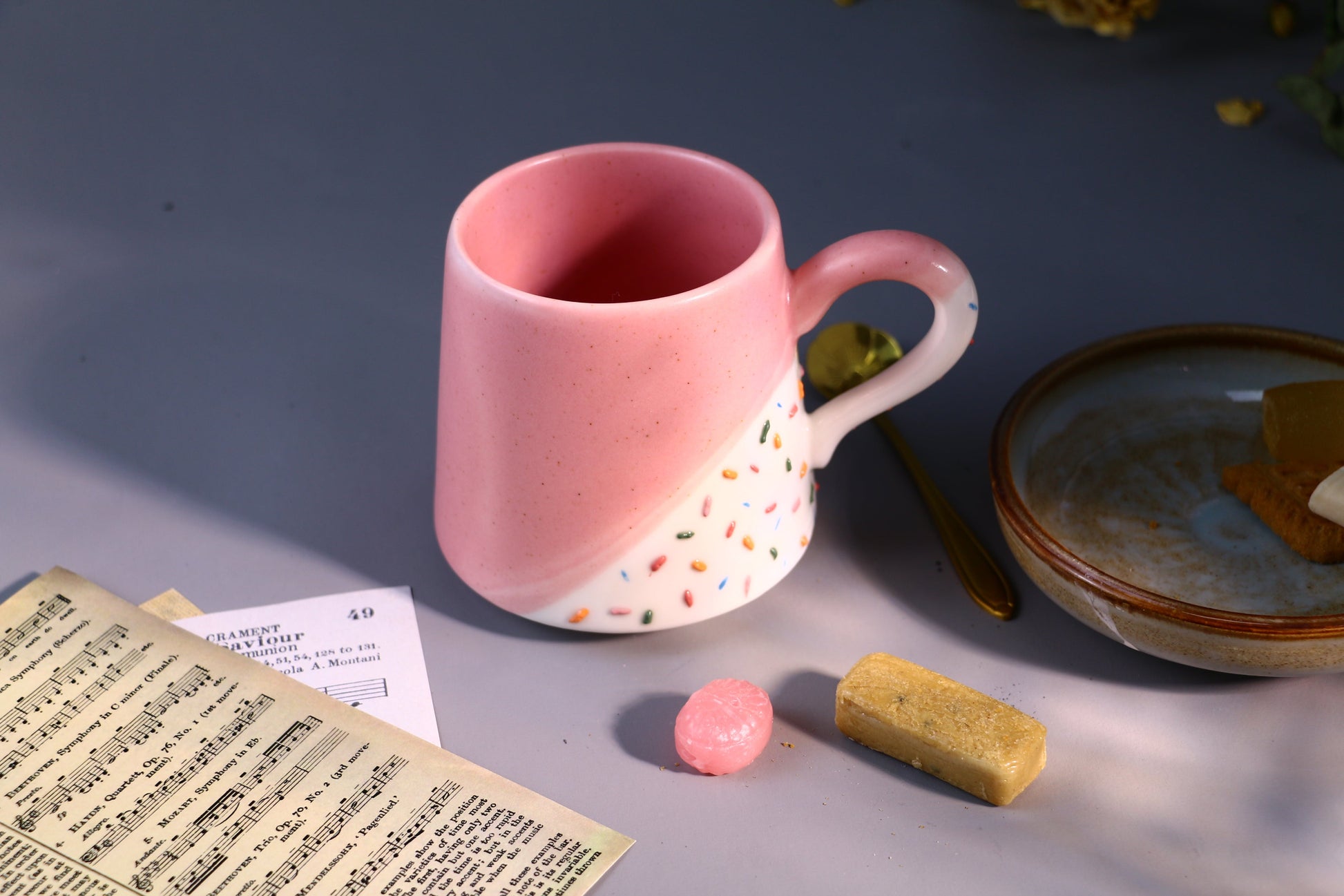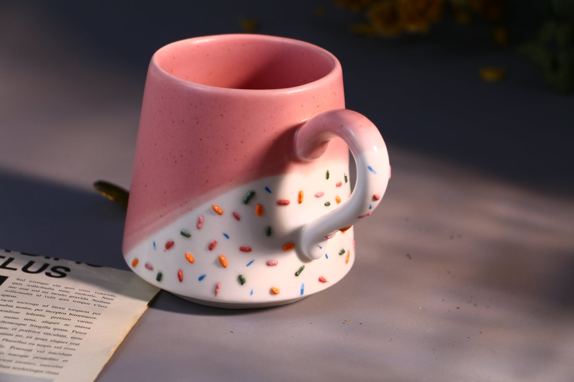 Pink Ceramic Coffee Mug, Ice-cream Personalized Handmade Pottery Cup for Gifts