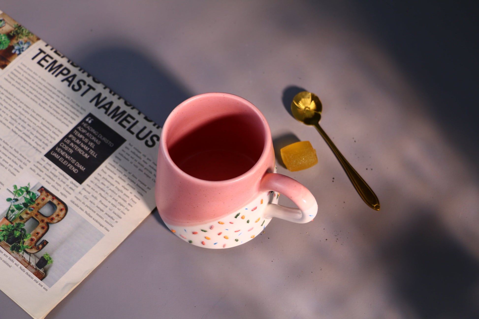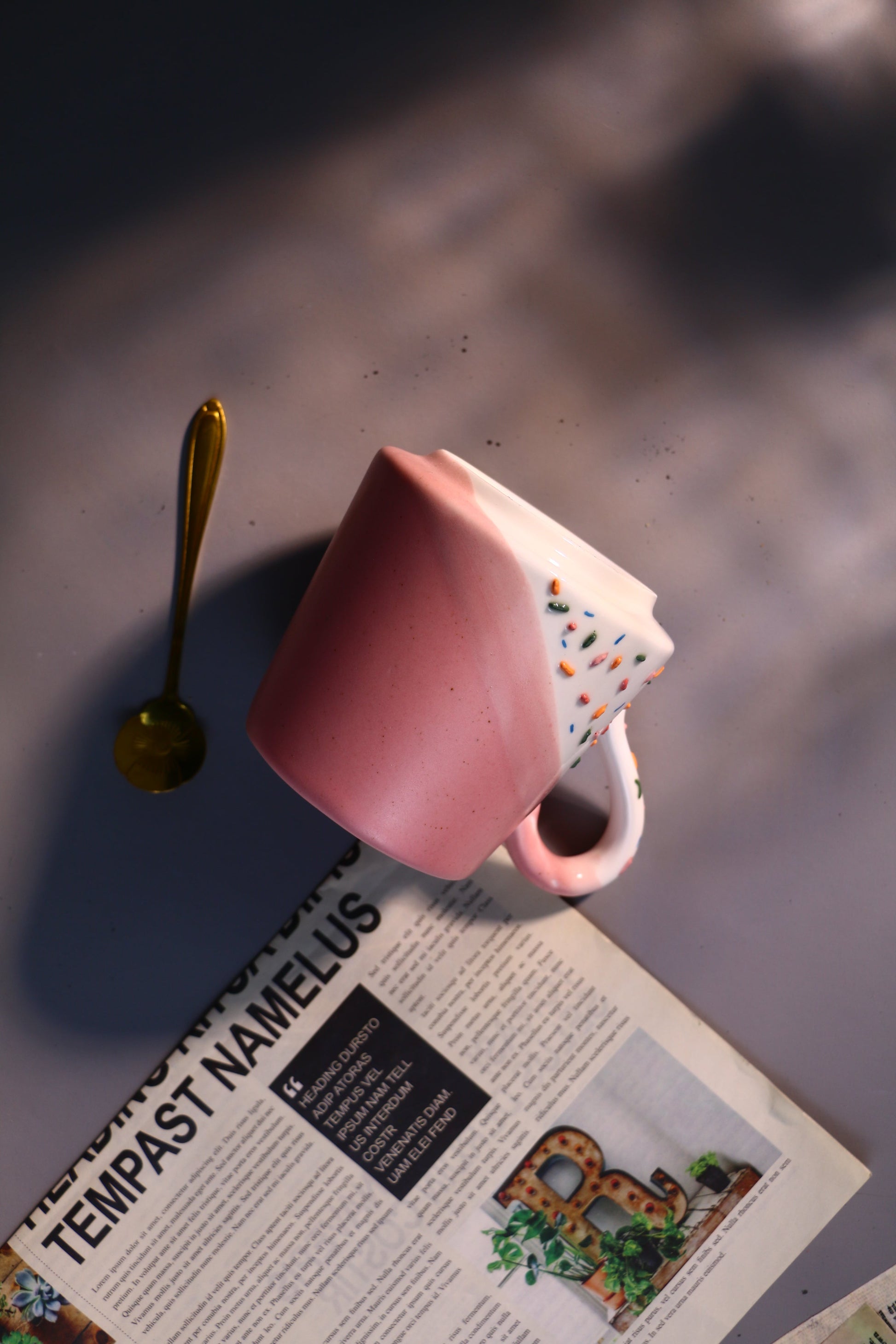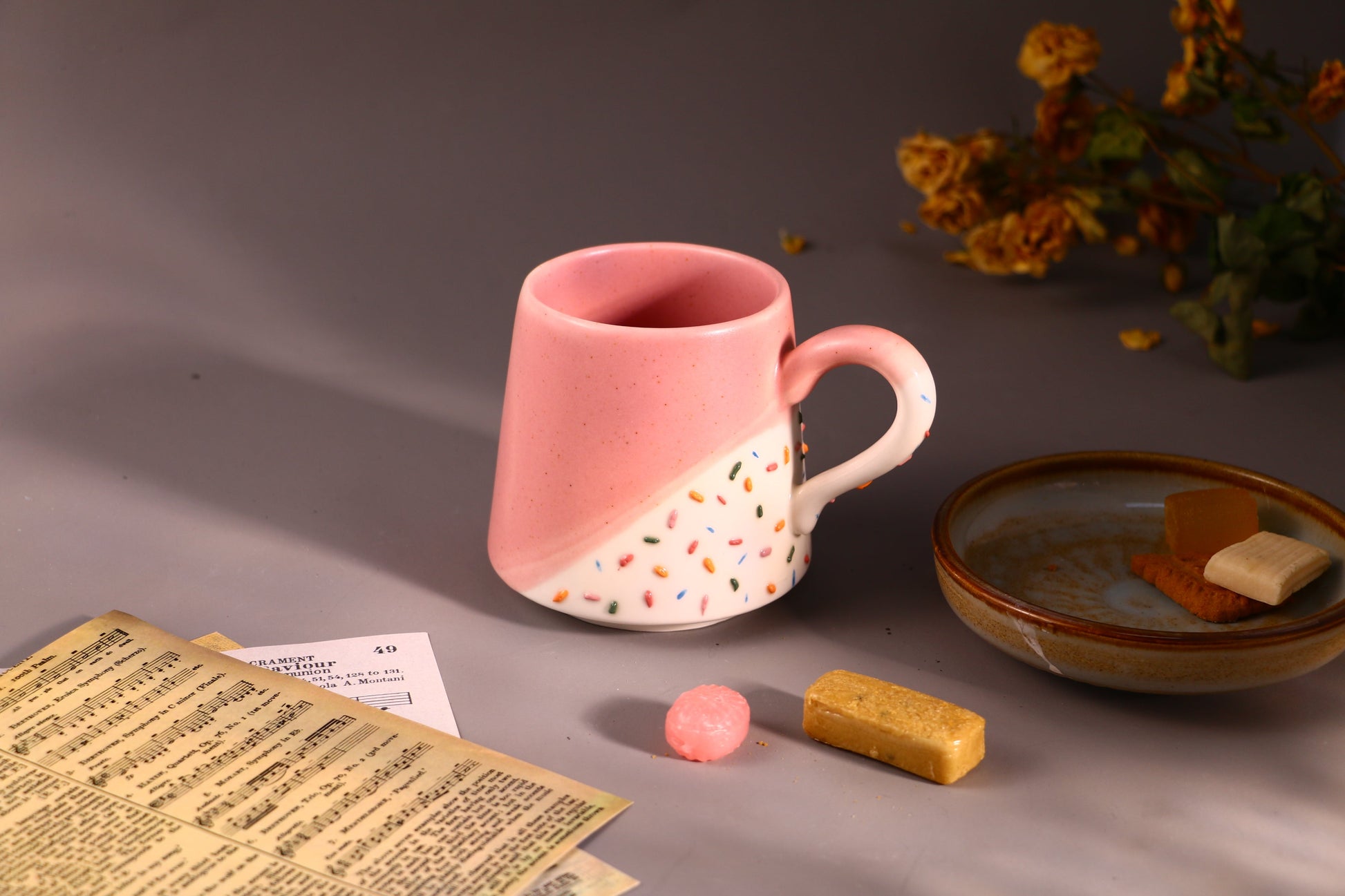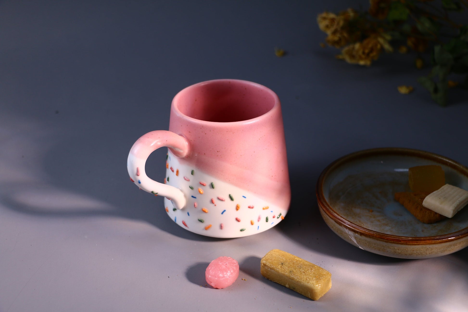 Pink Ceramic Coffee Mug, Ice-cream Personalized Handmade Pottery Cup for Gifts